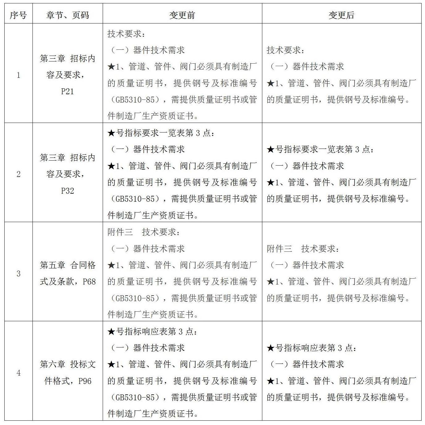 一、現(xiàn)對(duì)南寧卷煙廠2023年烘絲機(jī)蒸汽管道優(yōu)化改造(項(xiàng)目編號(hào):GXTZ-ZB-2023第(729)號(hào))發(fā)布的招標(biāo)文件做出如下變更: