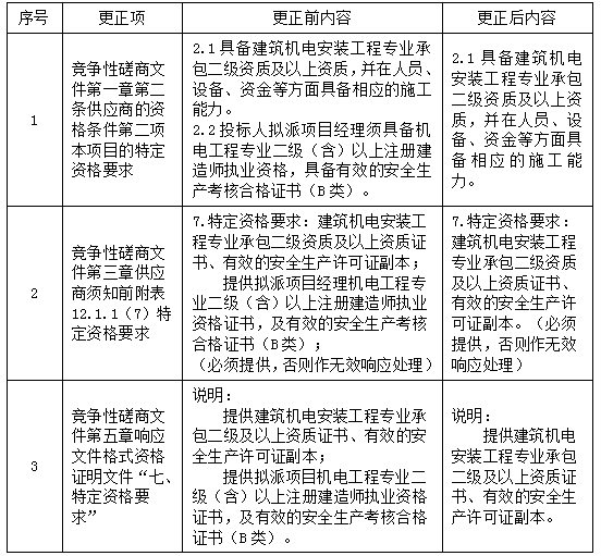 更正事項(xiàng):競(jìng)爭(zhēng)性磋商文件