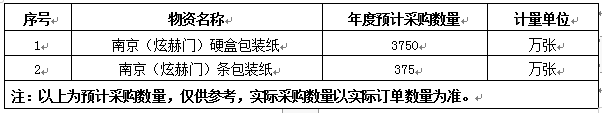 一、招標(biāo)項(xiàng)目名稱:2023-2025年合作品牌條、盒包裝紙采購(gòu)之南京(炫赫門)項(xiàng)目。